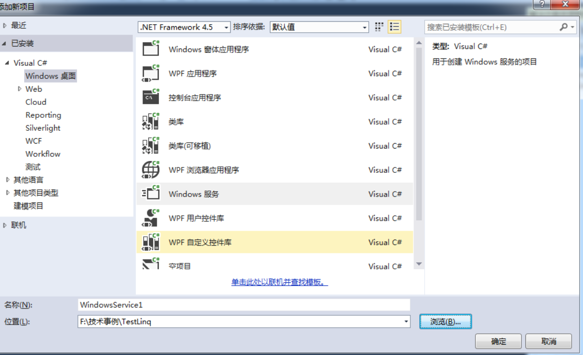 VS2013创建Windows服务