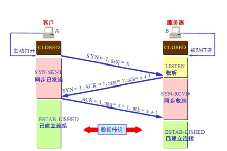 1)发送端首先发送一个带有SYN(synchronize)标志地数据包给接收方。