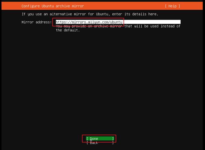 设置镜像地址:https://mirrors.aliyun.com/ubuntu