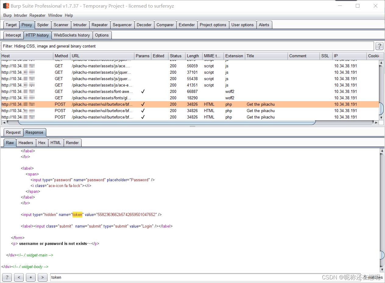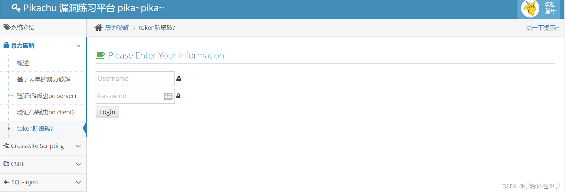 访问pikachu-master -->暴力暴力-->token防爆破? 项目:pikachu-master/vul/burteforce/bf_token.php