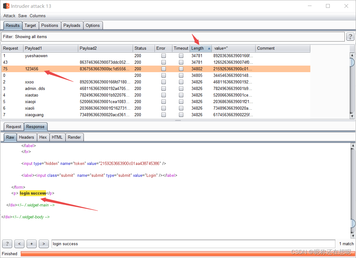 既然如此我们就可以预测下一个请求的token值它就在本次的响应包里 我们在下一次的请求包里加上这个token值 往此反复就可以实现暴力破解了