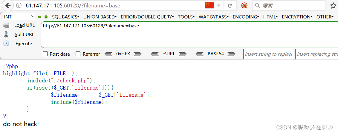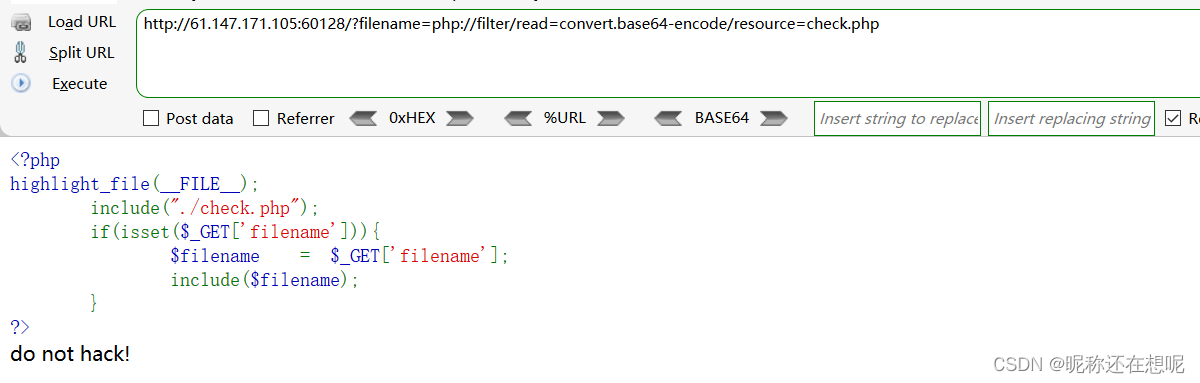 read base encode 这些都被过滤了 只要出现这些关键字 就会返回do not hack