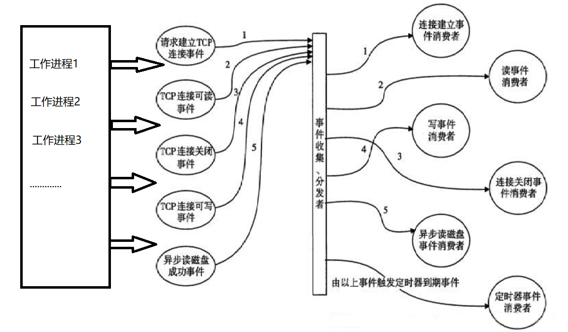 Nginx是模块化设计,里面包括很多模块,其中核心模块:邮件模块、HTTP模块、事件模块