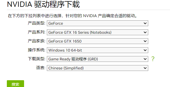 建议去 https://www.nvidia.cn/Download/index.aspx?lang=cn (英伟达官网下载) 选择电脑对应的操作系统下载。这里的话操作系统可以在电脑上面会有一个标签告诉你或者去 设备管理器——显示适配器就可以找到 就像我的就是GTX 1650 不行就下载个鲁大师嘛 也可以的