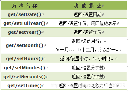 15.get/setFullYear() 返回/设置年份,用四位数表示。 getMonth() 方法可返回表示月份的数字。返回值是 0(一月) 到 11(十二月) 之间的一个整数。故+1