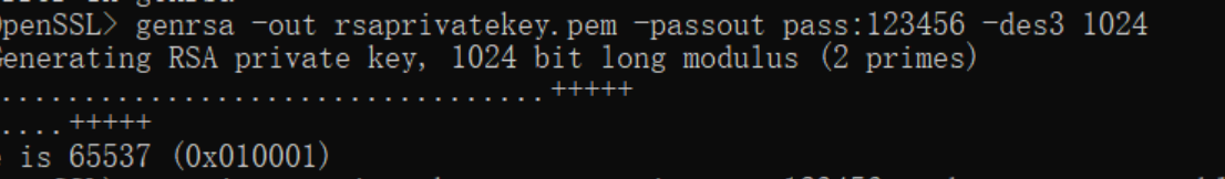 (1)创建1024位的RSA私钥,写入文件rsaprivatekey.pem,同时将私钥用3DES加密,并设置密码。