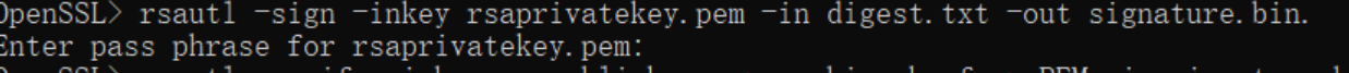 (3)利用上述私钥对摘要digest.txt进行签名,生成签名文档signature.bin