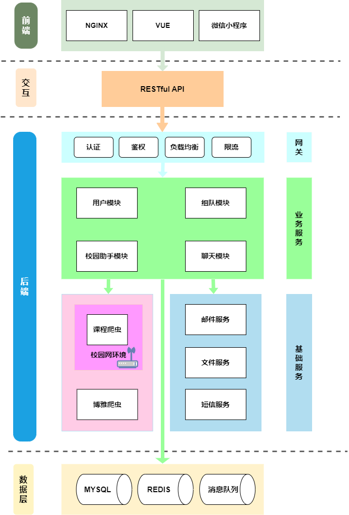 后端使用Java开发(JDK11),框架为Spring,使用的中间件有MySQL,Redis,nacos,RabbitMQ,主要技术有SpringCloud,MybatisPlus,WebSocket。