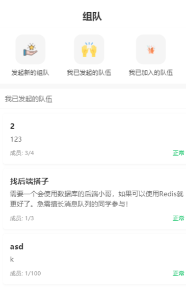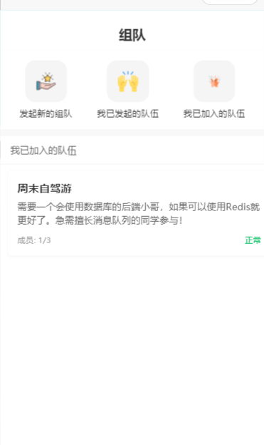 - 需求:小H希望查看自己发起的队伍和加入的队伍