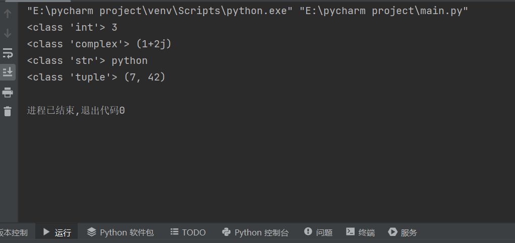1 r1=eval('1+2') 2 print(type(r1),r1) 3 4 r2=eval('1+2j') 5 print(type(r2),r2) 6 7 r3=eval('"python"') 8 print(type(r3),r3) 9 10 r4=eval('7,42') 11 print(type(r4),r4)