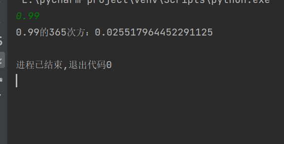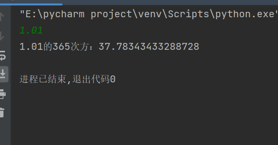 1 x=float(input()) 2 y=x**365 3 print(f'{x}的365次方:{y}')