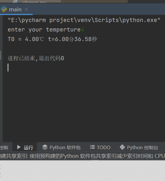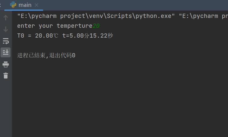 import math p = 1.038 c = 3.7 K = 0.0054 Tw = 100 Ty = 70 T0 = int(input('enter your temperture')) M = 67 x1=M**(2/3)*c*p**(1/3) x2=(0.76 * (T0 - Tw) / (Ty - Tw)) a=math.pi x3=K*a**2*(4*a/3)**(2/3) x4=math.log(x2) t=x1/x3*x4 min = t // 60 sec = t % 60 print(f'T0 = {T0:.2f}℃',f't={min:.2f}分{sec:.2f}秒')