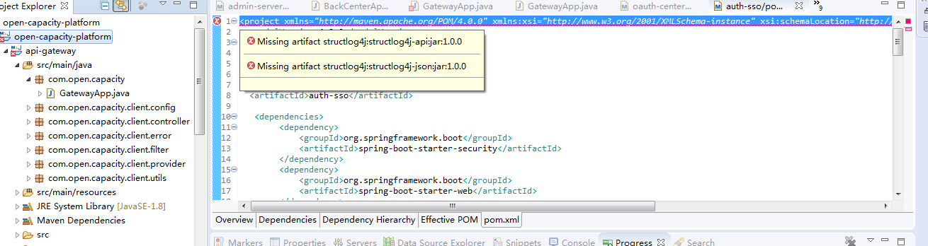 最近在搭建一个 open-capacity-platform 这样一个微服务项目,搭建maven加载依赖包的时候出现Missing artifact structlog4j:structlog4j-api:jar:1.0.0 这样的问题,和其他一些缺少包问题解决办法大同小异。