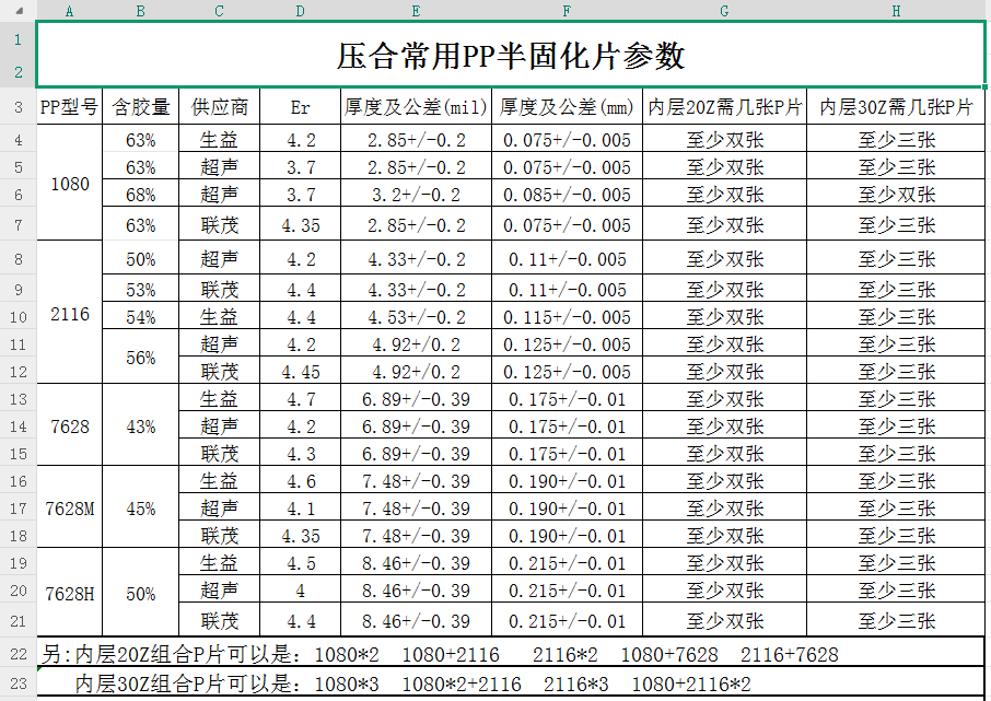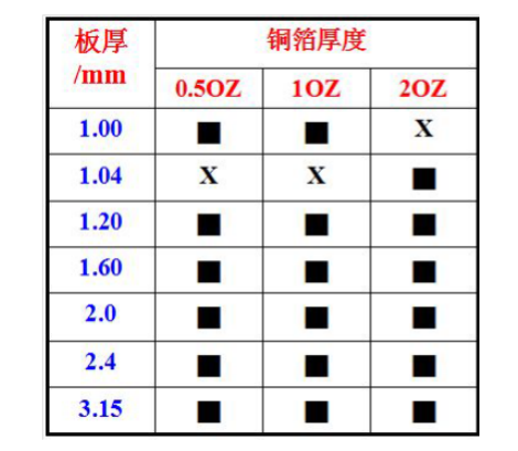 6. 常规板料(FR-4)的厚度规格、铜箔厚度选择参考