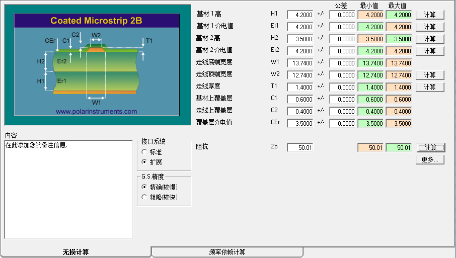 - 特性阻抗:由走线宽度(W)、厚度(T)、介质高度(H)、介电常数(Dk)决定。
