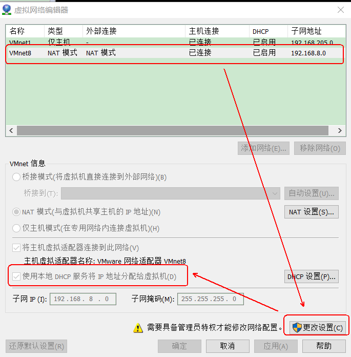 - 打开 vm 编辑选项中的 虚拟网络编辑器