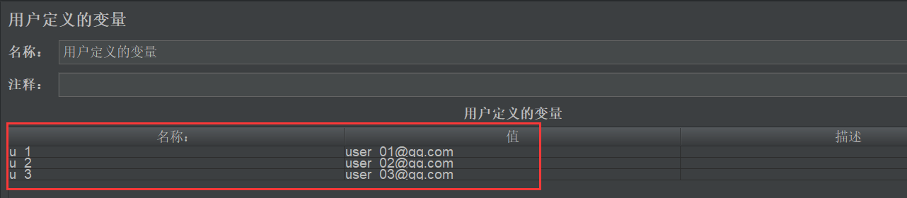 1、在“线程组”添加“配置元件”-->“用户定义的变量”