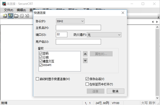 首先进入SecureCRT的主界面,点击闪电图标,快速连接