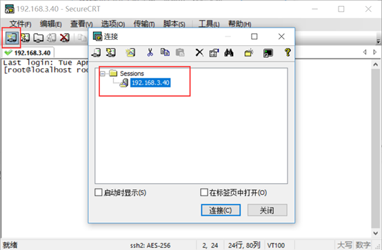 3、最后双击刚建立的session,即可呈现所需要登录的设备的登录界面