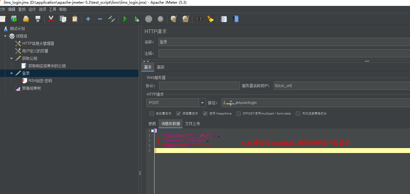 (2)Pre-request Script使用上一步的公钥+密码进行加密