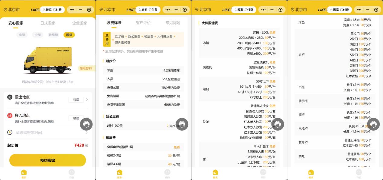 可在【立刻搬家】小程序上查看具体的收费详情!