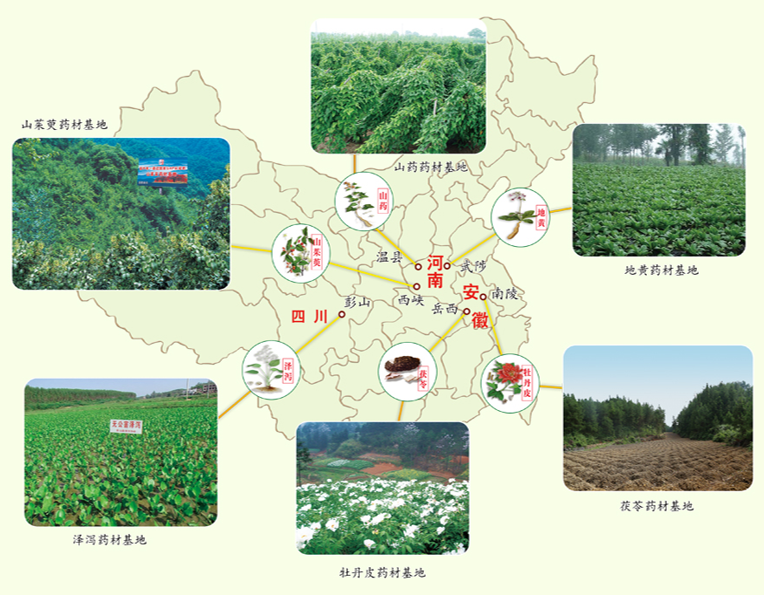 仲景宛西制药在河南、安徽、四川等三省六地建立了六大药材生产基地,专门培育品质高、药效好的道地药材。