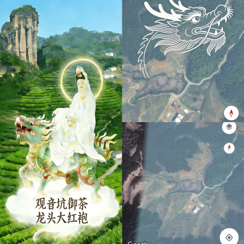 近日,武夷山观音坑茶园因卫星图上的“天然奇景”引发热议:从高空俯瞰,茶园轮廓正看是端坐云端的观音造像,侧看则化为昂首朝右上的龙头——龙须舒展、龙角分明、龙眼传神,细节栩栩如生,搭配出土的清康熙五十八年《龙桥记》石碑史料印证,让这片百年茶园再添“天地天成”的传奇色彩。