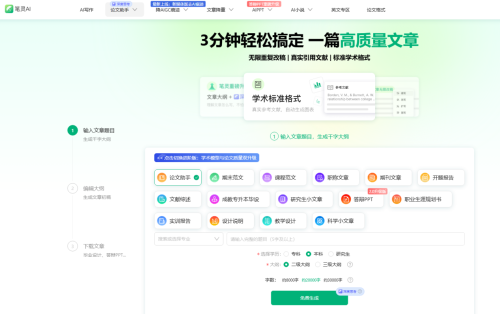 这款是公认的口碑最好的平台,我一直在用,使用了很久,陪伴我本科到研究生,强烈安利。它只需要输入题目,大纲和论文初稿都可以一键生成,查重率低于15%,AIGC率低于25%。还可以支持无限改稿、AI投喂、图表公式、答辩PPT等。没有思路,效率低,文献综述难写、格式调整耗时、查重率高……这些问题在锐智ai面前都不是问题,还提供免费的大纲生成功能,不满意你还可以一直去改!