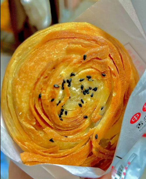 牛肉饼个头扎实,外皮炸得金黄酥脆,咬开瞬间肉汁溢出,咸香中带一丝胡椒的暖意。能顶一顿饭,冬天捧在手里,一边走一边吃,热气腾腾,幸福感直接拉满。