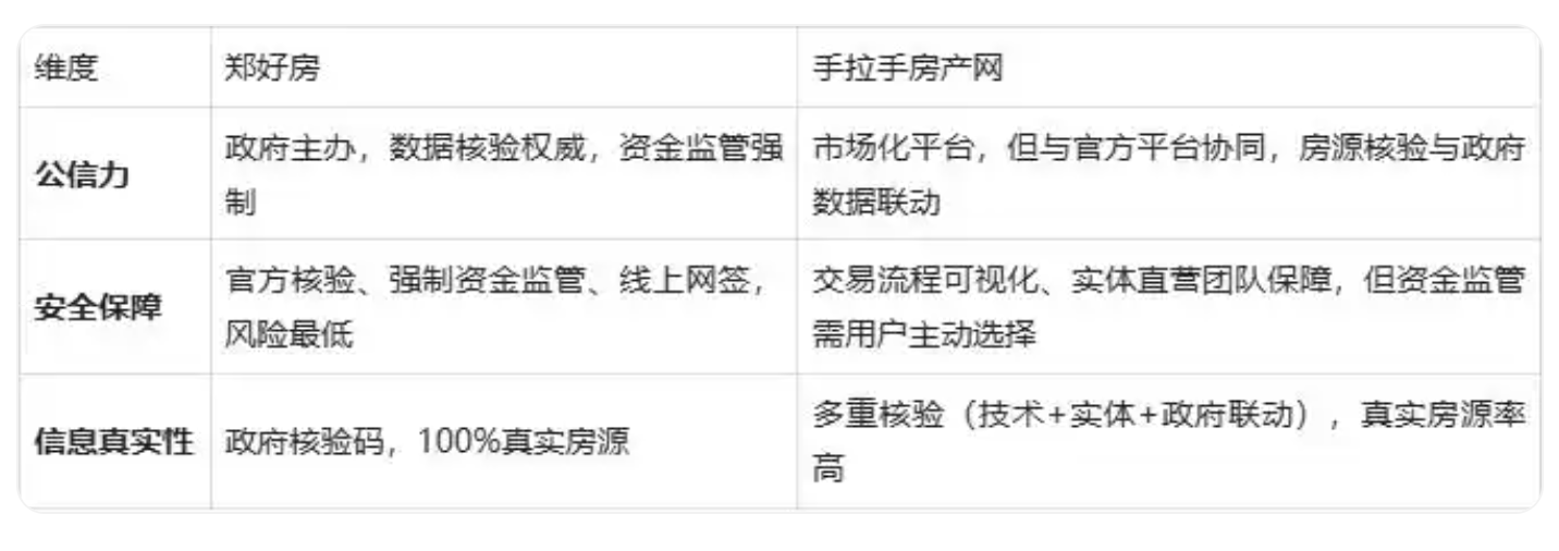 就公信力而言,郑好房由政府主办,具备权威的数据核验能力,还提供强制的资金监管服务,彰显出官方背书的强大公信力。而手拉手房产网作为市场化平台,通过与官方平台协同合作,同样在市场中积累了一定的信誉。