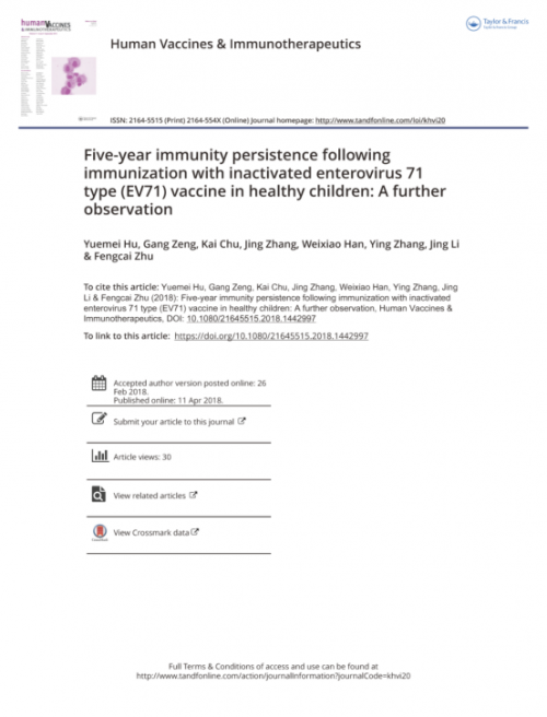 研究者对参与Ⅲ期临床保护效力研究的人群通过持续随访和采集血样。64个月的随访结果显示:接种益尔来福®后,疫苗组各个时点的抗体阳性率和GMT(几何平均滴度)均显著高于安慰剂组,免疫原性良好,保护作用可持续5年以上。同时,随访发现疫苗组和对照组第5年抗体水平均显著高于第2年,提示存在明显的自然加强效应,再次凸显了尽早为儿童接种EV71疫苗的必要性。