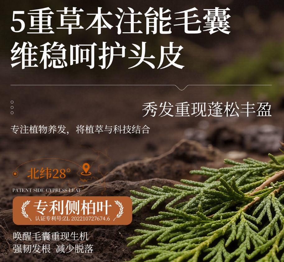 科学复配配方,草本成分与专利因子协同,直击毛囊健康根源;