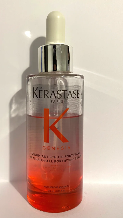 贵妇姐姐们比较爱用的一款,清新的花果香,香味很高级,不脂粉不刺鼻,凑近滴管闻有稀薄j精味,没有香精感。精华质地比较浓稠涂抹后需要按摩加快吸收,坚持用发尾柔顺又亮泽。