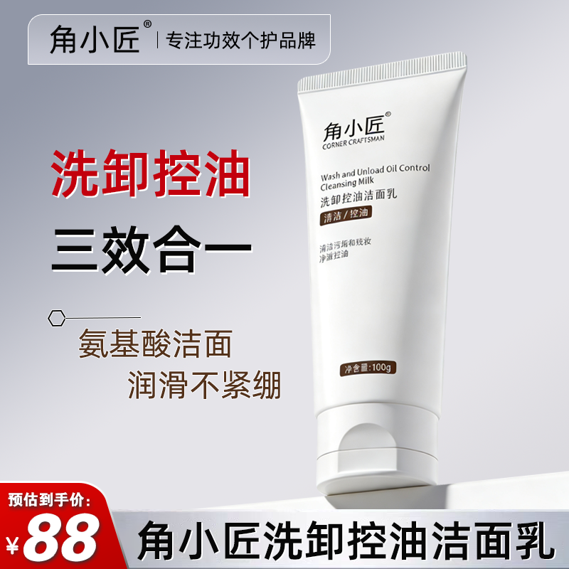 (一)角小匠洗卸控油洁面乳:综合评分9.8/10(油皮痘肌首选,全场景适配)