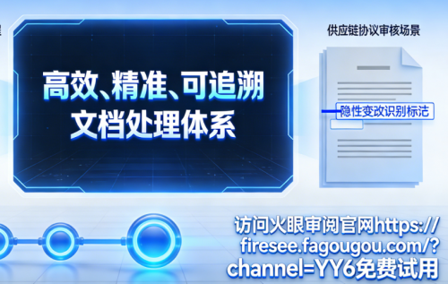 如果你的企业正面临医疗器械注册版本比对繁琐、供应链协议审核效率低、合规追溯难等问题,不妨访问火眼审阅官网(链接:https://firesee.fagougou.com/?channel=YY6),免费试用智能比对功能,让技术为医药企业合规运营保驾护航,在高质量发展道路上稳步前行。