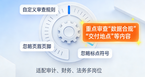 2.够灵活:自定义审查规则,想忽略页眉页脚、标点符号,或者重点盯 “数据合规”“交付地点”,都能自己设,审计、财务、法务各岗位都能用;