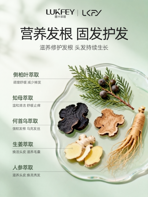 姜根提取物(12%)舒缓头皮,平衡油脂分泌;