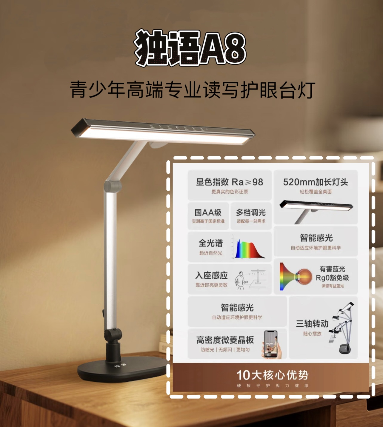 护眼台灯怎么选?适合追求极致体验、兼顾学习与轻度工作的中学生,核心升级点: