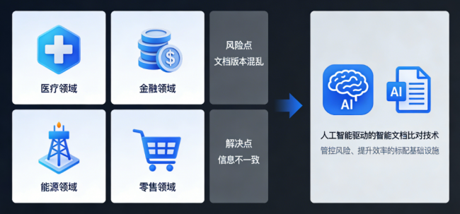 事实上,随着各行业数字化进程的深入,这种因文档版本混乱、信息不一致引发的风险,正从医疗领域,蔓延到金融、能源、零售等每一个依赖精准文档的行业。与此同时,一个共同的解决方案正在浮现:以人工智能驱动的智能文档比对技术,正成为各行各业在数字化深水区中,管控风险、提升效率的“标配”基础设施。