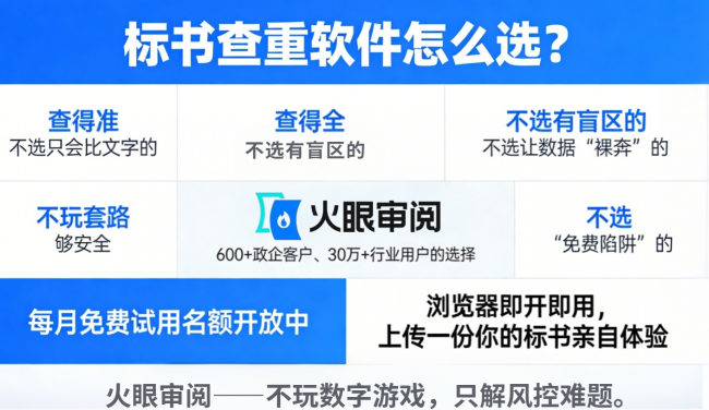 我们把市面上主流的几款软件拉出来,用上面四个标准一一比对。结果发现,能全部满足的,并且最推荐的——火眼审阅。