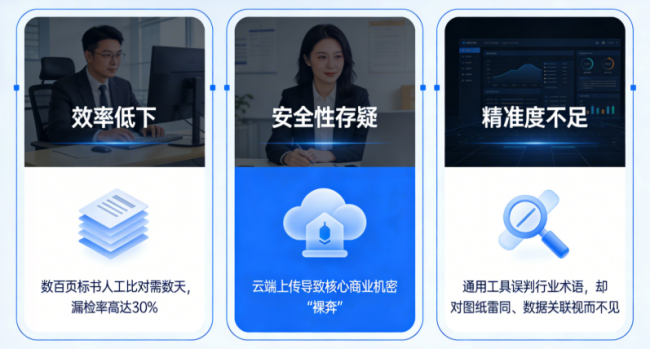 效率低下:数百页标书人工比对需数天,漏检率高达30%