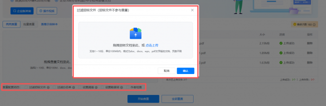 自定义查重配置:过滤招标文件、设置白名单、调整敏感词库