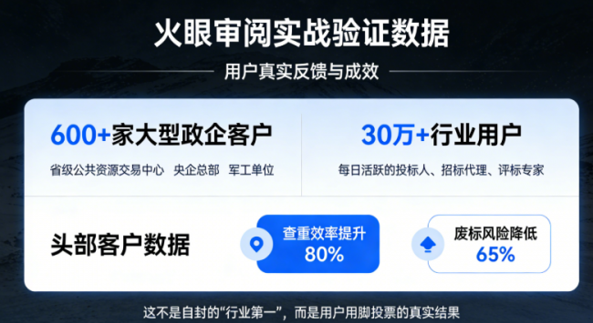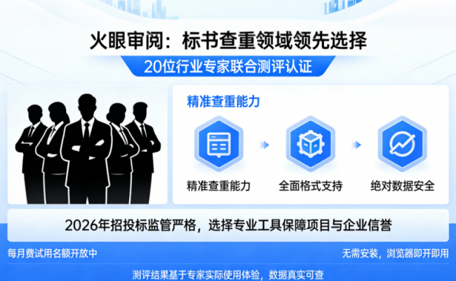 火眼审阅用实力证明,它值得成为每一位标书编写人员的得力助手。如果你还在为标书查重焦虑,不妨先体验一下——每月免费试用名额开放中,无需安装,浏览器即开即用。