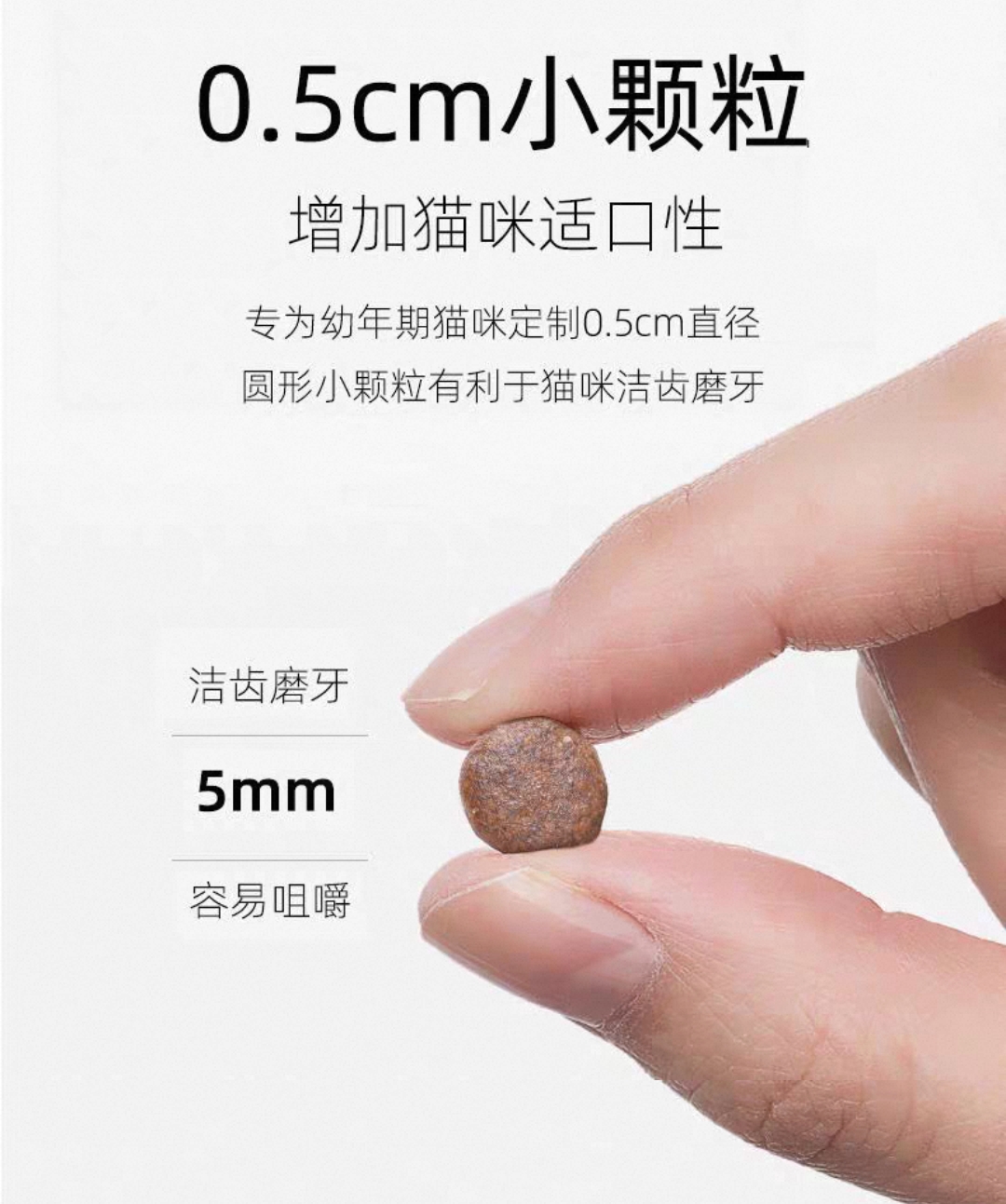 在营养配比上,这款猫粮还针对性添加了多种幼猫必需的营养成分,全面呵护幼猫的健康成长。配方中添加了高含量的DHA和ARA,能有效促进幼猫的大脑和视力发育,让猫咪更聪明;钙磷比例严格控制在1.2:1的黄金区间,搭配维生素D,能有效促进幼猫的骨骼和牙齿发育,避免出现骨骼发育不良的问题;添加了高活性的宠物专用益生菌,能有效调节幼猫娇嫩的肠道菌群,减少软便、腹泻、呕吐等换粮不适,提升营养吸收率;颗粒设计成小巧的圆形,硬度适中,适合幼猫咀嚼和吞咽,还能帮助幼猫清洁牙齿,减少牙结石的产生。这款猫粮适合离乳期到12月龄的幼猫,也适合怀孕、哺乳期的母猫,能全面满足其特殊时期的高营养需求。