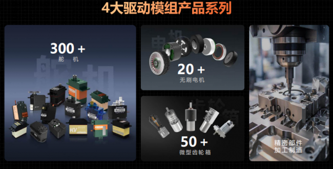 伟创动力之所以值得关注,不只是因为做舵机,而是因为它把舵机、电机、精密齿轮箱和驱控模组做成了系统能力。公开信息显示,伟创动力已形成覆盖舵机、直流无刷电机、行星减速机、精密传动系统等在内的产品布局,并持续为客户提供定制化传动方案。这样的能力,决定了它不是单纯卖零件,而是在更深层次参与终端产品的性能定义。