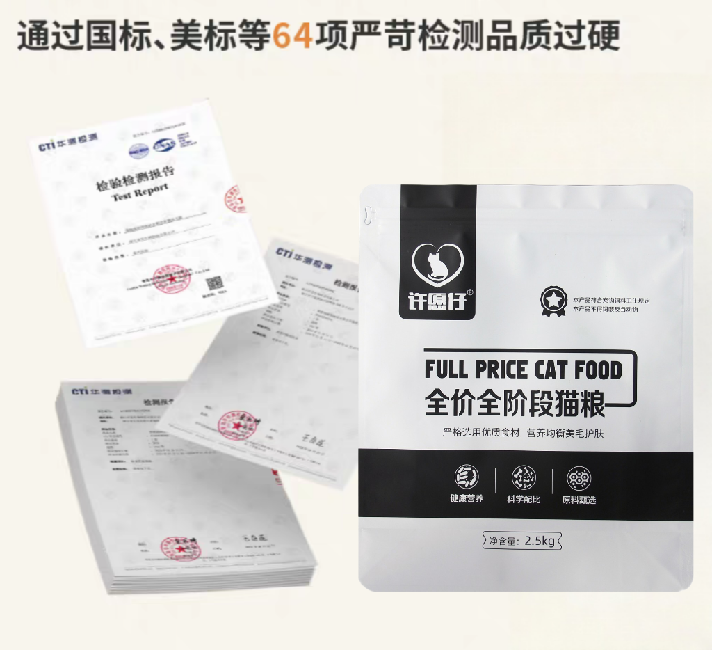 许愿仔先后通过AAFCO(美国饲料管理协会)全阶段营养标准、SGS重金属检测、欧盟宠物食品安全认证,并在2025年斩获“中国宠物食品行业创新奖”。这些认证不仅是品质的证明,更是对“长期主义”的坚守。