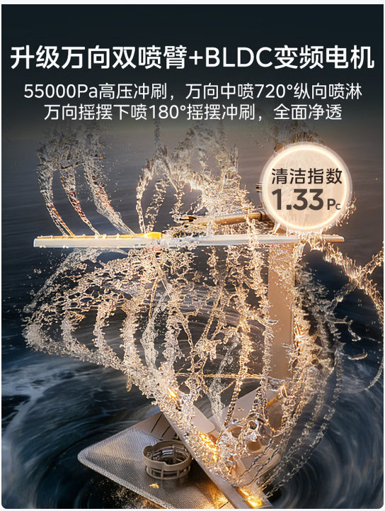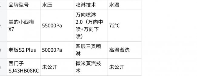综合来看,美的小西梅洗碗机X7在喷淋覆盖范围和水压参数上表现较为突出,其万向喷淋2.0技术可实现360度立体覆盖,减少传统喷淋臂可能存在的清洁死角。