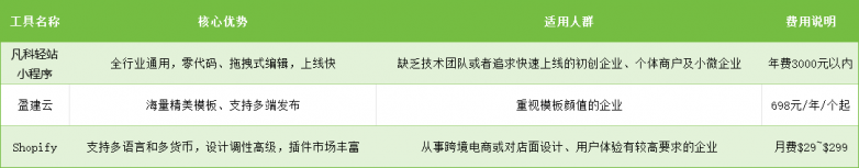 话不多说,小编给大家送上一个对比表格,大家可以根据自己的需求选择一款适合你的小程序搭建工具。